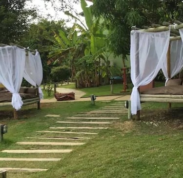 Un bungalow spazioso immerso nella foresta atlantica, perfetto per rilassarsi lontano dal caos cittadino.